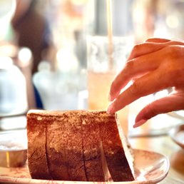 Came here for dinner for reservation, and we were able to be accomodated to an outdoor seating where most of their tables are. It's a nice looking set up but can get a bit cold at night, and not all tables have the fire heaters. Sourdough bread- not the biggest fan of the crust which almost looks like tree bark, and is almost as dry and tough as one. The inside is nice and soft and easy to eat though. Also not the biggest fan of the butter. It's not as soft and melted as it looks and doesn't taste as buttery as I would have hoped. 2/5 Scallop Aguachile- Super fresh! I personally think scallops complement best with super savory things like bacon/ham, but this is more of a light summer vibe, served warmish cool, with a sour twist of salsa, olive oil, and cilantro. Not my personal favorite since it felt like the scallop's taste wasn't fully utilized but I can appreciate it. 4/5 Ahi Tartare-One of the better dishes. The fish is fresh, and the taste is a good mixture of savory, salty, tangy, and umami. Spread it on the brioche toast and this dish quickly disappeared because it was so good! 5/5 Ora King Salmon- not bad, the skin is crispy and salty, and the meat part is soft and not dry. You have to make an effort to mix the meat with the sauce to get the best experience; the creamy sauce is where all the flavor is 4/5 Goat Milk Cavatelli- A dish that is also on the more flavorful side, without necessarily being too heavy. It's topped with truffle so of course it's gonna be good, hard to mess that up. Broccoli, sausage, and the cheese choice are a perfect blend of ingredients. 4/5